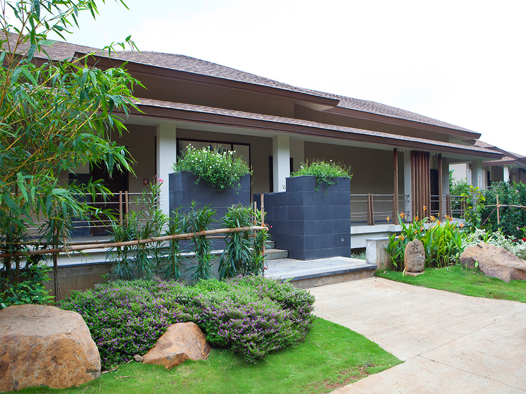 The client envisioned a retreat amidst nature. Atmantan Wellness Resort is surrounded by greenery and unique biodiversity from all the sides. The main objective while designing and planning was to focus on nature and natural elements as they were an integral part of the healing process at this wellness resort. The basic concept of the design was to merge the nature with all the architectural features through trails and pathways. Battery operated vehicles are used to transport guests around the site reducing pollution. True to its concept, materials like stones, boulders, and soil acquired from the site are used in the design. Civil work was kept to a minimum to retain the natural tone of the design. The external public spaces are strategically planned to let the guests enjoy the natural flora and fauna of the area. Amphitheatre, lawns and stepped seating worked around the natural contour allow the guests to physically and visually indulge in nature. Environmental friendly material and energy efficient techniques enabled the site to be a GOLD LEED certified project. Efforts are made to keep the design serene and the make the project a true definition of luxury embraced in sustainability.