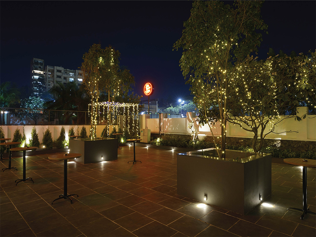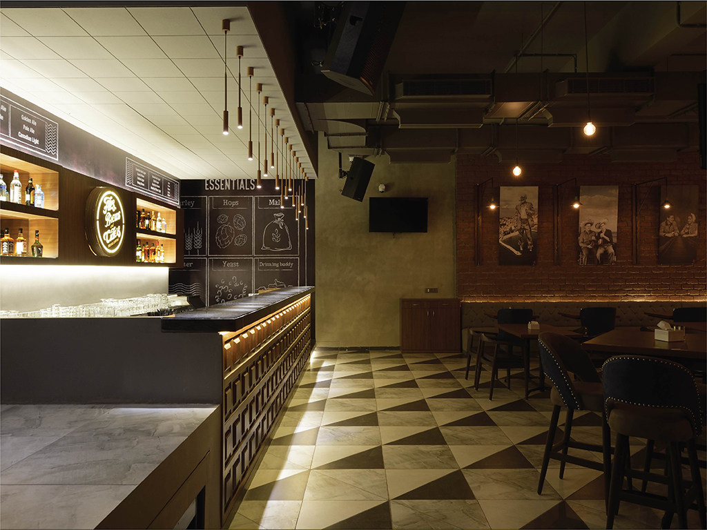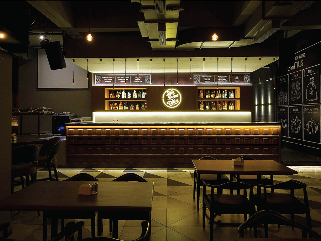The client wished to create a space which exudes a sense of calm to its patrons. The idea was to create a beer garden which is a perfect spot for an informal evening spent in socializing with friends. Lighting and illumination was fundamental to creating the right atmosphere for a brewery. High lighting is used to give the fermentation room and storage room prominence. A rustic Chandelier also lends a warm welcoming vibe to the Patio. The Lounge is lit with filament drop lights and frosted wall light giving the entire place and the fun bar table a warm glow. The indoors open effortlessly into the garden. The design is a balanced combination of material, colours, textures, illumination & overall circulation. A stage & dedicated bar to cater to the crowd seated outside is strategically worked out.
