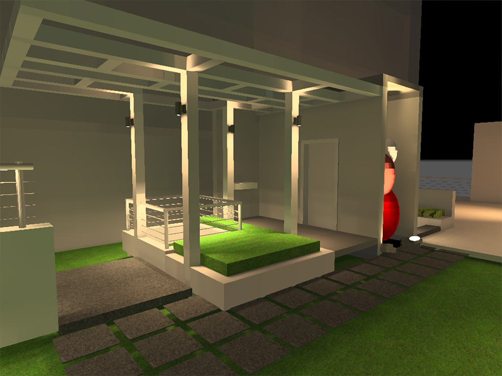 The client wanted to enhance the clean lines, sumptuous materials and the overall landscape of the project. For this project we incorporated a versatile lighting scheme created by using a leaner LED cove wall light, floor lamps and downlights to fashion an elegant and sophisticated private home lounge. The illuminations are integrated into the architecture. The hand rail has the concealed flood lights with minimum footprint to consolidate with the design. There is a led trip below the seating, corner LED strip and LED spots are placed under the stepping-stone for water illumination. The tuneable concealed downlight with R.F. control controls the colour of the LED from Warm White (2700K) To Cool White (6500K) which enhances the overall landscape design.