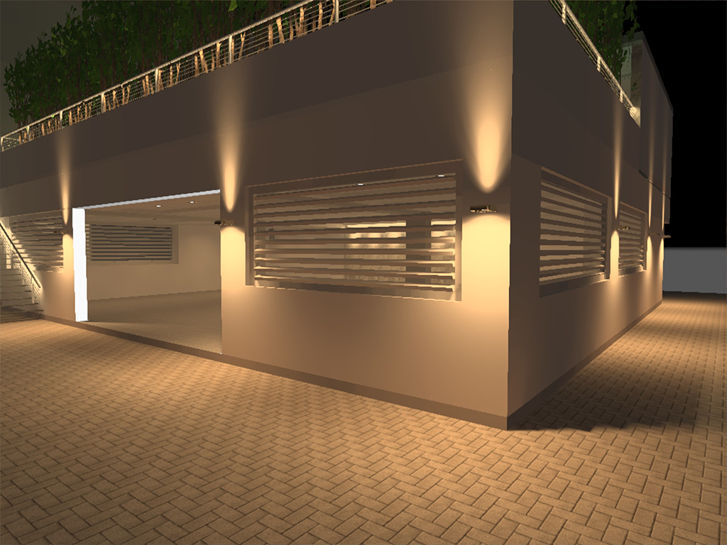 The client wanted to enhance the clean lines, sumptuous materials and the overall landscape of the project. For this project we incorporated a versatile lighting scheme created by using a leaner LED cove wall light, floor lamps and downlights to fashion an elegant and sophisticated private home lounge. The illuminations are integrated into the architecture. The hand rail has the concealed flood lights with minimum footprint to consolidate with the design. There is a led trip below the seating, corner LED strip and LED spots are placed under the stepping-stone for water illumination. The tuneable concealed downlight with R.F. control controls the colour of the LED from Warm White (2700K) To Cool White (6500K) which enhances the overall landscape design.