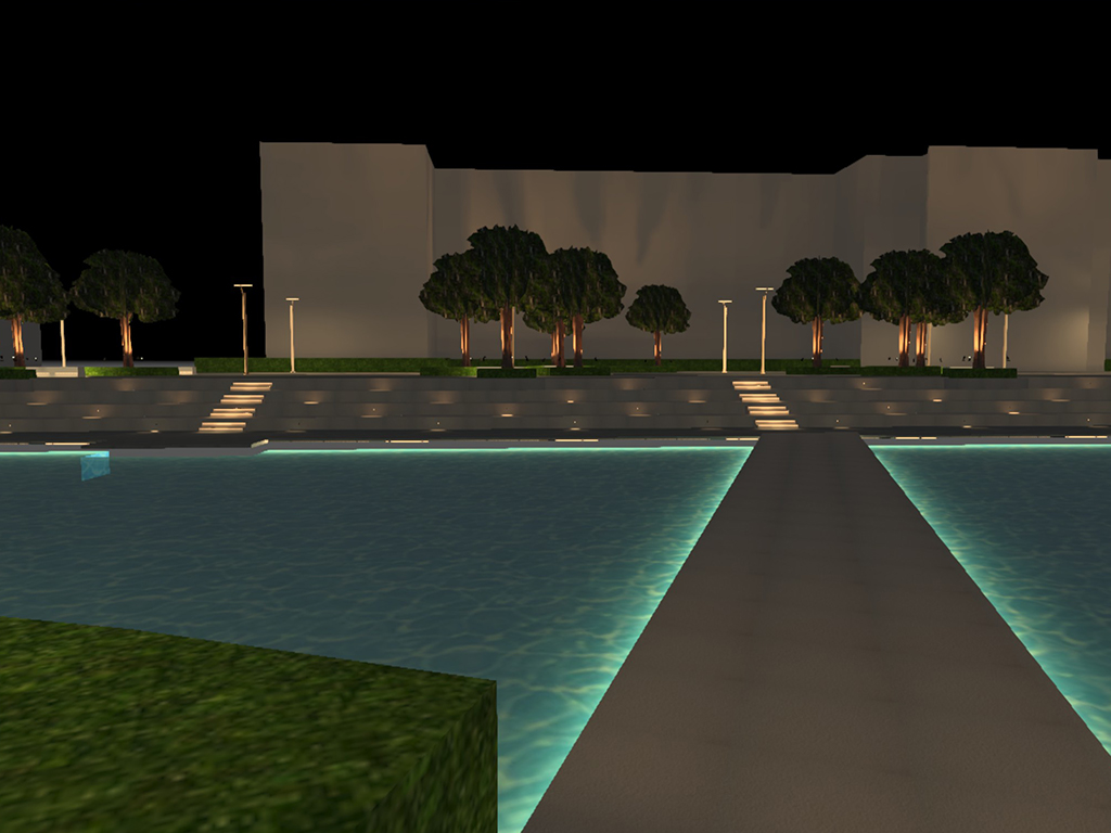The design for this educational institute had to such that it’ll bring out the architectural features of the structure. The façade lighting is used in such a way that it accentuates the architectural features like the arches, dome, entrance, bridge and the atrium. The Majestic Avenue and tree plaza is created by a combination of light pillar, a soothing and calming water front & up lighting tree foliage.A floating bridge effect is created by LED strip / dot less light to create an elevated bridge effect