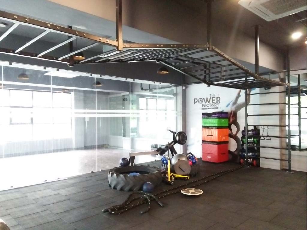 The client wished for a workout space that had a young and fresh atmosphere. The idea was to encourage a healthy lifestyle. The aim while designing for this site was to utilize the natural light that the site had due to its road facing side. A complete glazing on this side allows the natural light to pour in letting the space being well lit throughout the day. The neutral colour palette of greys and whites brings out the colours in the graphics on the walls. The ceiling is left exposed to give the site an airy feel. Hanging lights are used to add interest to the entire space.